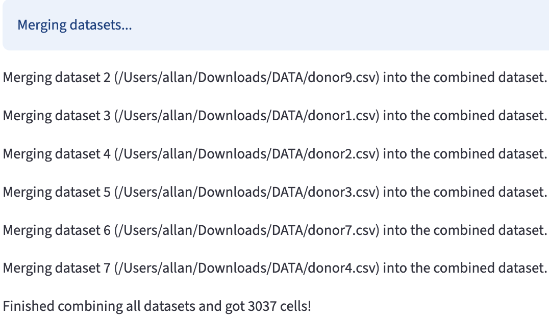 It scans the specified folder path and finds all CSV files. It uses the cell identifier column to check for duplicates both within each dataset and across all datasets.