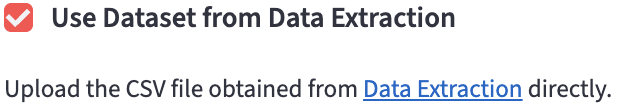 Users can upload the dataset output from the Data Extraction directly or their own datasets in CSV (Comma Separated Values) format after finishing the interactive configuration setup.