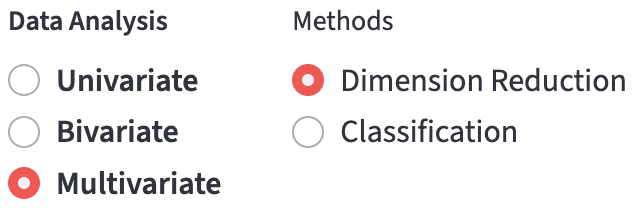 - Subset the data to find data of interest on the top. All the later interactions are based on this filtered dataset.