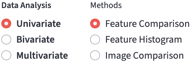 - Depending on the number of numerical features in the analysis, the methods are categorized into 3 groups: