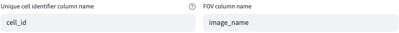 Users can specify the column name for the unique identifier of the cell to be stored in the output dataset. The cell identifier is constructed as {FOV Identifier}_{cell_label}, where the cell_label is the unique integer label in the mask or the row number if the decay type is 2D decay.